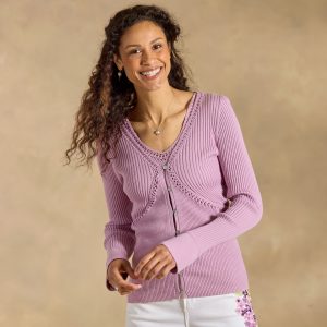 An open weave creates an airy feel to this sweet sweater. with flutter sleeves and a ribbed neckline and hem. Cotton/acrylic. Dry clean. Imported. Exclusive. Sizes XS (0-2). S (4-6). M (8-10). L (12-14). XL (16-18). XXL (20-22). Approx. 20.25l.
