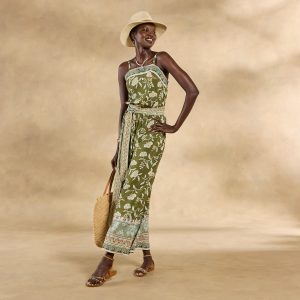 Invite the great outdoors into your wardrobe with this comfy pull-on romper. blooming with lush florals and accented with border details. Adjustable straps and elastic at the waist and back bodice for the most comfortable fit. Side seam pockets. Viscose. Machine wash. Imported. Exclusive. Sizes XS (0?C2). S (4?C6). M (8?C10). L (12?C14). XL (16?C18). XXL (20?C22). Approx. 26l.