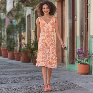 Hearts skip a beat over this romantic rayon dress with jersey body and mesh overlay. Woven. ribbon appliqu?? adds an unrivaled elegance. Classic fit with full skirt. Nylon/rayon/spandex. Dry Clean. but for best results Sundance recommends garment to be hand washed. Imported. Exclusive. Sizes XS (0-2). S (4-6). M (8-10). L (12-14). XL (16-18). XXL (20-22). Approx. 42l.