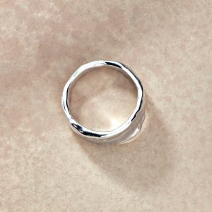 This faith ring features a cross on our gracefully curving. sterling silver band. Hand-hammering all around lends a primitive aspect to this Sundance exclusive. Whole sizes 5-9. 3/8w.