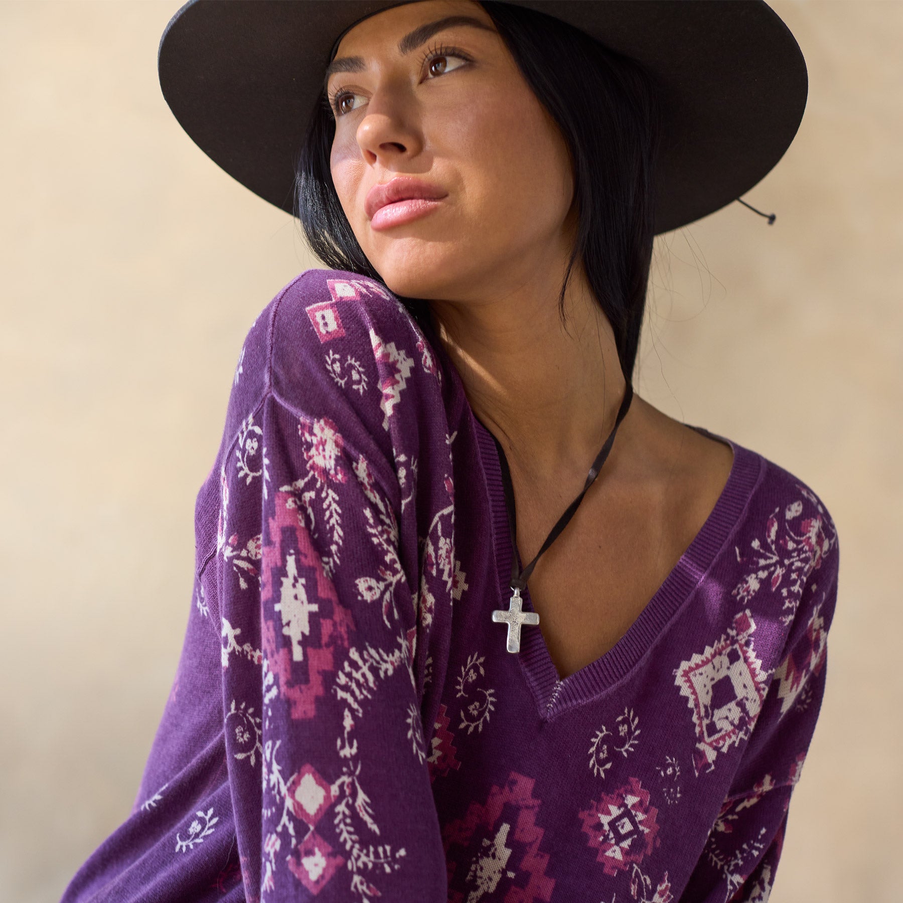 A new Sundance classic. with bandana/floral print front and back and hand-embroidered embellishment at the open V-neckline. Exposed seams. rib trim. relaxed fit. Cotton. Hand wash. Imported. Exclusive. Sizes XS (0?C2). S (4?C6). M (8?C10). L (12?C14). XL (16?C18). XXL (20?C22). Approx. 24l.