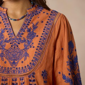 Stunning allover embroidery adds wonder and beauty to our vibrant notch neckline top graced with ladder lace insets. eyelet details and ruffles at the neckline. Bracelet length sleeves. Camisole sold separately. Cotton. Machine wash. Imported. Exclusive. Sizes XS (0–2). S (4–6). M (8–10). L (12–14). XL (16–18). XXL (20–22). Approx. 26l.